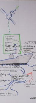 Production en temps réel d'un visuel grand format qui cartographie les échanges des personnes présentes.
