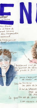 Production en temps réel d’une captation visuelle en croquis et aquarelle mixant les méthodes de la facilitation graphique et le rendu visuel du carnet de voyage.